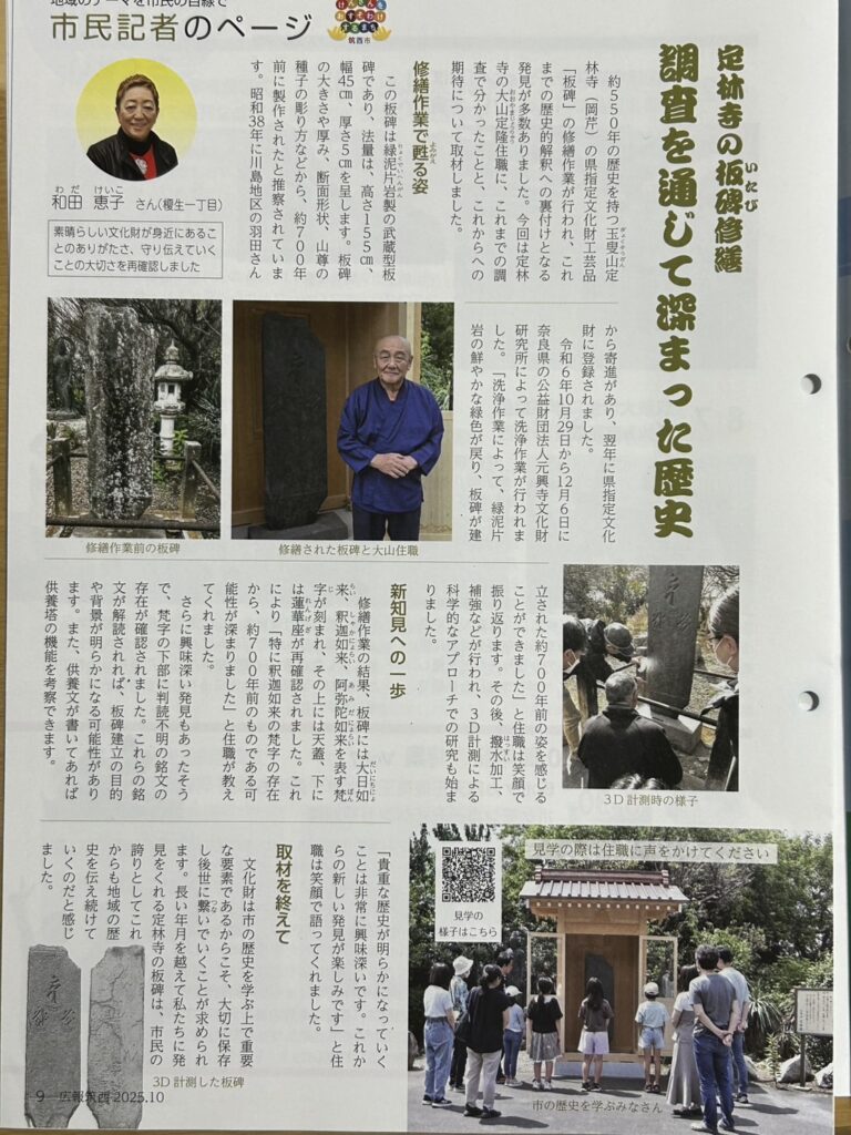 このたび、定林寺に伝わる板碑の修復や調査の取り組みが、筑西市の広報誌「ピープル」(2025年10月号)に掲載されました。